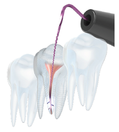 従来の治療では届きにくかった歯の根の先端や、細かい枝分かれ部分に対し、高周波電流を流すことができます。